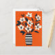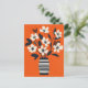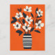 En lush tangerine blommigt krona i en flotta stripe vas uppmärksammar en lugn himmel blå bakgrund.