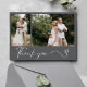 Säg tack i stil med det här Modern 2 Photo Bröllop-tackkortet. Designat med enkelhet och elegans har framsidan två av dina favoritfoton från bröllop som har parats med ett skript för chic "tack" för en hjärtlig men modern beröring. Baksidan ger utrymme för ditt personligt bröllp-budskap, skapar det perfekten till tacksamhet samtidigt som du ge dina nära och kära en viktig del av din speciella dag.