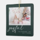 Modern 2-foto-Grönt för Glatta skript - jul. Byt bara ut exempelbilderna på vardera sidan mot din egen och anpassa dig till namn och året. Glatt finns i ett modernt skript i en lekfull uppsättning i vitt som kan ändras till ett annat färg om du så önskar.