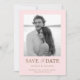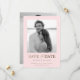 Starta resan i bröllop med den här unika eleganten och spara datumkortet, med ett klassiskt svartvitt foto med rosa. Texten "Spara datumet" markeras i luxuriös faux metallic guld, vilket ger designen en smula sofistikering och elegans. Perfekt för par som vill ha ett tidlöst och modernt estetiskt kort, det här kortet är enkelt anpassade med dina foto- och bröllop-detaljer, skapar det vara en minnesvärd keepé för dina gäster.