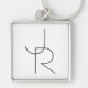 Modern 2 överlappande Initialer | Svartvit Fyrkantig Silverfärgad Nyckelring