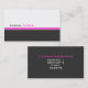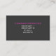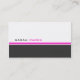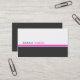 En vitbakgrund med en stor kolfärgadrand och en mindre rosafärgad görar randig längst ner av kortet. Ditt namn är på bekläda, och all annan information är på baksidaen.