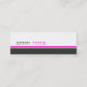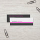En vitbakgrund med en stor kolfärgadrand och en mindre rosafärgad görar randig längst ner av kortet. Ditt namn är på bekläda, och all annan information är på baksidaen.