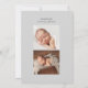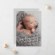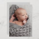 Ett fullt-blekt foto-födelsemeddelande med stort rörligt namn inslag i ett elegant modernt typsnitt med födelsedetaljer nedan. På baksidan av kortet finns ytterligare två nyfödda foton och föräldrarnas personliga meddelanden eller ytterligare födelseinformation. Hela inslag på det här kortet är anpassade, så det är enkelt att skapa en typ av design genom att byta ut typsnitt och färger på text och färg för att uppfylla dina specifika behov. Kortets baksida är ett idealiskt ställe att även lägga till foton från syskon på det spännande tillkännagivandet från sin nya bror eller syster. Detta skulle också vara ett vackert antagande eller ett vackert tillkännagivande av graviden.