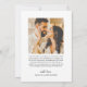 Detta moderna vita tackkort visar en trio bröllopsfoton på framsidan, med elegant kalligrafi-typografi centrerad mellan bilderna. Baksidan har ett porträttfoto tillsammans med ett helt anpassningsbart tackmeddelande. En ren vit ram runt layouten håller fokus på dina favoritminnen. Namn och bröllopsdatum är helt redigerbara.