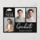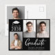 Modern blått vykort för svart studenten-meddelande med 3 foton och "Student" i ett vitt skript med contemporary. Lägg till namn, klassår och högskola eller högskola i enkel vit typografi.