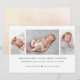 Modern födelseannonseringskort med 3 fotokollage och klassisk typografi.