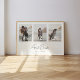 Modern 3-fotografs bröllopspar Anpassad väggkonsttryck. Personifiera denna minimalistiska och eleganta affisch med 3 av dina favoritbröllopsfoton, brud och brudgum namn, datum för ert bröllop och plats. Denna produkt gör en fantastisk personlig bröllopsjubileumsgåva eller en gåvaidé för nygifta.