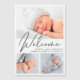 Ett enkelt och elegant modernt magnetiskt födelsemeddelande med en 3 fotokollage av ditt nyfödda baby överlagrade med "Välkommen" i ett snyggt-skript. Lägg till din baby namn, födelsedatum och födelsestatus.