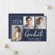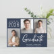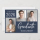 Modern mörk - blått studenten-meddelande med 3 foton och "Student" i ett fet, vitt skript med contemporary. Lägg till namn, klassår och skola eller universiteten i enkel vit typografi.