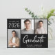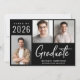Modern svart studenten-meddelande med 3 foton och "Student" i ett vitt skript i contemporary. Lägg till namn, klassår och skola eller universiteten i enkel vit typografi.