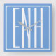 Modern 3-Initialer-monogram | Mjuk blå Fyrkantig Klocka