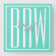 Modern 3-Initialer-monogram | Vit på Aqua Fyrkantig Klocka