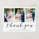 Modern 3 Photo Collage Black Script Bröllop Vykort