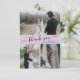 Modern, Elegant, minimalistisk Lilac Hand lät Bröllop fotokollage tacka dig kort. Snyggt bröllop tackar dig för att du har en kortmall med tre (3) foto på framsidan och ett (1) foto på baksidan. Med texten "tack" i ett snabbt och välskrivet typsnitt för typografi i svart på ljusa lilak- eller ljusa bakgrunder för lila. Anpassa det anpassade namnet och tack för meddelandet. Om du föredrar att skicka anteckningen tar du bara bort exempeltexten för att få mer utrymme. Om du behöver hjälp eller matcha objekt kontaktar du designern!
