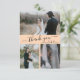 Modern, Elegant, minimalistisk hand, låt Bröllop fotokollage tacka dig kort. Snyggt bröllop tackar dig för att du har en kortmall med tre (3) foto på framsidan och ett (1) foto på baksidan. Med texten "tack" i ett snabbt, skrivet typsnitt för typografi i svart på persikofärgad gult, krämfärgad persikobakgrund färg. Anpassa det anpassade namnet och tack för meddelandet. Om du föredrar att skicka anteckningen tar du bara bort exempeltexten för att få mer utrymme. Om du behöver hjälp eller matcha objekt kontaktar du designern!