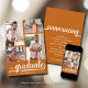 Lägg till dina fyra favoritfoton på framsidan av dessa examensfestinbjudningar med examen och årskull i chic bokstavsstil på en bränd orange bakgrund. FLER design och färger finns i vår butik, inklusive inbjudningar, förhandsanmälan och vykort.