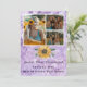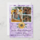 Modern 4 Photo collage Lila Amethyst med Solros studenten-meddelande som visar ram över ditt fotoval. Baksidan har ett annat foto och mer information om student.