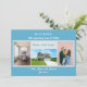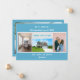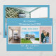 Minimalistiskt, elegant, trendig flytta-annonskort med 3+1-anpassningsbars foton, namn av familjemedlemmar och texten "Vi har flyttat! Kom besöker oss snart!" + det nya adress och landline-mobila numret på framsidan för att du ska kunna anpassa dig. Modern, chic blek turkosa blå bakgrund med vit, blå och teal skrift. Observera att du kan behålla kortet som det är, eller överföra det till vykort och därmed endast behålla framsidan, med tre av fyra foton.