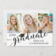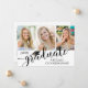 Modern fotokollage-meddelande i studenten med 3 bilder framtill och 1 på baksidan med kalligrafiskript typografi för titeln STUDENT accenterad med en studentmössa eller pantritbord och personlig med ditt student namn och klassår i svart på en redigerbar vit bakgrund - välj ett annat färg eller välj från en rad formaterade bakgrunder för grafik. Baksidan innehåller information om student. ASSISTANS: Om du vill ha hjälp med designändring/anpassning, ändringar i färg, överföring av designen till en annan produkt eller om du vill samordna produkter kontaktar du designern INNAN ORDERING via Zazzle-Chattan eller makeitaboutyoustore@gmail.com.