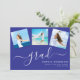 Inbjudan dina vänner och din familj till din studentfest med det här Modern 4-fotosamlingskortet för Studentfest. Den här enkla minimalistiska inbjudan från stil innehåller elegant-vit skripttypografi på trendigets blå bakgrund och är perfekt för high school eller College student. Kortet på dubblan har plats för fyra av dina favoritfoton i studenten skapar det perfekten för att visa vad du har uppnått och inbjudan dina kära för att fira med dig. Grattisar!
