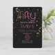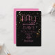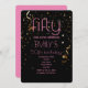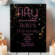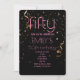 Modern 50-årsfirande svart bakgrund guldkonfettiöverlägg rosa text inbjudan