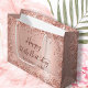Girly Glam Modern Ro Guld Glitter Foil Monogram Namn 50:e (eller ANY AGE) Anpassningsbar Personlig Gift Bag. Den här Vuxen feminin FIFTIETH-födelsedagstexten party med texten "Grattis på födelsedagen" i ett handskrivet kalligrafskript för snyggt, Monogram Namn och datum och ålder på rosa eller ro guld faux-borstad metallfolie ser bakgrund med löst glam glitter ram. Idealisk för en feminin vuxen eller en gigantisk milstolpe på födelsedagen, är detta perfekt ett uttryck för en modern ro guld eller rosa gnistra glitter girig födelsedagsfest.