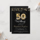Modern och festlig 50:e födelsedagsfest inbjudan med den titel du är inbjuden till 50 ÅR i Party I SKAPAR i kalligrafi-skript typografi och faux metallisk guld-ballong-nummer och guld-strömmare och konetti och vitt ljus i ditt bakgrundsval av färg (visas i svart). ASSISTANS: Om du vill ha hjälp med designändringar eller anpassning, ändrar färg, överför designen till en annan produkt eller om du vill samordna produkter kontaktar du designern INNAN du beställer den via Zazzle-Chatta eller e-post makeitaboutyoustore@gmail.com.
