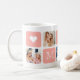 Personlig muminredningscollage-mugg med 5 anpassade bilder och blushrosa hjärtbokstavsblock skapar en hjärtlig och stilren present som hon kommer att värna om varje dag. Denna anpassade muminredningskaffemugg har en collageliknande design som kombinerar fem uppladdade bilder med mjuka rosa fyrkantiga paneler som stavas ”MUM”, kompletterat med en söt vit hjärtdetalj för en kärleksfull, feminin touch. Den balanserade layouten blandar sentimental bildspråk med ren, minimalistisk typografi och skapar en polerad och modern estetik som är perfekt för att fira din mamma. De mjuka blushrosa färgblocken kontrasterar vackert mot den krispiga vita bakgrunden, vilket gör att varje foto sticker ut tydligt samtidigt som en sammanhängande och elegant look bibehålls. Designad för dem som söker en personlig muminredningsmugg, anpassad fem-fotocollage-mugg till mamma eller en meningsfull present från döttrar eller barn, förvandlar denna anpassade kaffemugg älskade familjeminnet till en daglig påminnelse om kärlek och uppskattning. Perfekt till mors dag, födelsedagar, jul eller en genomtänkt tack-gåva, kombinerar denna personliga MUM-mugg