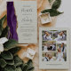 Den lämnat kant i eleganten i den moderna bröllopsinbjudan har en lila vattenfärgsagat gräns som trimmas med faux guld glitter. I anpassadet kombineras grått-handskrift, kopparplåt och kursivt typsnitt på en elfenbensbakgrund. Byt enkelt ut de fem exemplen bilder på baksidan mot dina foton och lägg till en kortfattad text med ytterligare information (t.ex. webbadressen för webbplatsen).