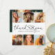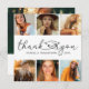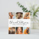 Ett enkelt tack från studenten som ger dig kort med en vit bakgrund, foton av graden, "tack" från ord i ett skript i eleganten som innehåller en pyttelicka, graderna namn, skolan, året och en personlig ett tackkort.