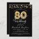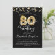 Modern och festlig 80:e födelsedagsfest inbjudan med titeln Du är inbjuden till ett 80-årigt Party I SKAPAR i kalligrafi-skript typografi och faux metallisk guld-ballong-nummer och guld-strömmare och konetti och vitt ljus i ditt bakgrundsval av färg (i svart). ASSISTANS: Om du vill ha hjälp med designändringar eller anpassning, ändrar färg, överför designen till en annan produkt eller om du vill samordna produkter kontaktar du designern INNAN du beställer den via Zazzle-Chatta eller e-post makeitaboutyoustore@gmail.com.