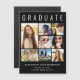 Elegant svart studenten-meddelande, magnetkort för att fira student, med "STUDENT" överst i stor vit typografi, en sju fotokollage och hans eller hennes namn, klassår och skola i modern vit typografi.