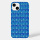 This is a Habatour Creations iphone case, filled with an authentic modern abstract digital pattern design, featuring vibrant blue hexagons & bubble accents.
