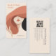 This modern hairstylist business card is designed to elevate your branding while showcasing your unique style and personality. It features an artistic, hand-illustrated faceless woman with flowing hair, paired with a minimal outfit and set against a soft, earthy neutral background with subtle texture. The contemporary illustration adds a chic, fashion-forward feel that’s perfect for beauty professionals.