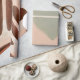 "Organic Mid Century Modern Abstrakt Art Decoupage Wrapping Papper." Modern, köttfärgad palett i färg accentuerad med varm grönt och chokladbrun för en lugnande, uppmjukande, könsneutral hemdekaler eller presentförpackning. Artist av internationellt licensierad konstnär och formgivare, Audrey Jeanne Roberts, upphovsrätt.