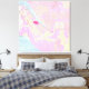 En förenklad linje teckning av en kvinnlig ansikte och en elegant som håller hatten mot en abstrakt mönster i en blandning av nyp, och teal.