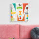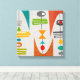 Modern arbetsyta i mitten av århundradet, färglösa abstrakter i funky och måne i skuggor av orange, guld, avokado, teal och grått. Ett perfekt till stil under ert halvsekel.