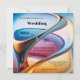 En modern konstbröllopsinbjudan med ett färgstarkt flöde abstrakt design. På baksidan är ditt favoritfoto. Du kan enkelt anpassa en QR-kodmall genom att lägga till en egen URL eller helt enkelt ta bort den.