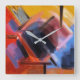 Modern Abstrakt Art Red Orange Black Rosa Blue Fyrkantig Klocka