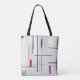 Snyggt Geometric/Abstrakt Linear Art Black, Silver med Fuschia Accents Tote Bag Gör en snyggt påstående med den här chicens geometriska totepåse. Med en mönster av att korsa svart och silver linjer med träffande accenter för magenta mot vit bakgrund erbjuder den här väskan ett modernt och contemporary som passar vardaglig använda. Den är tillverkad av tåliga material av hög kvalitet och ger gott om utrymme och tåliga handtag för bekväma bäranden av dina vardagliga behov.