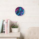Modern Abstrakt-blått och Rosa Rund Klocka