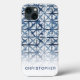"Modern Abstrakt Blue and White Shibori Mönster med ditt namn personlig, iPhone 13 Fodral." Vattenfärg, gammal japansk shiborit slips färgad stil "X" mönster i marinen, ljusblå och vit målades på målarduk och tonades ut i ditt namn för ett enkelt, minimalistiskt och snyggt telefonfodral som fungerar för manar eller för kvinnor. Artist av internationellt licensierad konstnär och formgivare, Audrey Jeanne Roberts, upphovsrätt.
