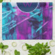 Ett modernt, abstrakt konst med fet formblått och pulserande rosa penseldrag. Lägg till en stänk i färg i köket med den här djärva designen. Anpassa kökshandduken med ditt monogram. Du kan ändra teckensnitt, storlekt teckensnitt och färg samt cirkeln under det.