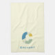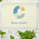 Teadhanddukar med en abstrakt, modernt monogram.