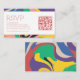 Pair din bröllopsinbjudan med den här matchande färgfulla OSA kort abstrakt, designad med djärvt konstnärligt sfäste. Med samma vibrerande strömmar av rosa, grönt, gult, lila och svart tillför det här moderna responskortet ett kreativ vid ditt bröllop-kontorsprogram. Perfekt för par att planera en roligt, contemporary eller konstinspirerad bröllop firande. OSA kort är helt och hållet anpassade med dina svarsalternativ, OSA deadline och gästinformation.