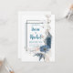 Skapa en sofistikerad och konstnärlig ton för din fest med denna fängslande moderna abstrakta dammiga blå blomsterbröllopsinbjudan. Designen balanserar skickligt skarp geometri med ömtåliga botaniska former. Den primära paletten är högkontrast, byggd på en ren vit bakgrund som accentueras av dämpade akvarelltvättar i blek rosapink och subtil gråblå. Mitten är en dynamisk lagergeometrisk ram som består av tunna kolblå svarta linjer, som ger en modern, arkitektonisk avgränsning för din text. Denna struktur mjukas vackert upp av en kaskad av bohemiska blommor. Viktiga element inkluderar en slående dammig blå kosmosblomma, fina linjeteckningar av vita blommor och texturblågrå ormbunksblad. Abstrakta färgblock, färgsprut och mjuka guldfärgade accenter (på de torkade kvistarna) tillför djup och en konstgallerikänsla. Den övergripande stilen är modern, boho-chic och elegant, perfekt för par som planerar ett bröllop i stadsmiljö, en gallerimottagning eller någon annan tillställning som betonar strukturerad design, konstnärlig textur och en unik färgpalett. Denna design är perfekt för blomsterbröllopsinbjudningar, abstrakta