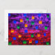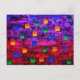 Vykort, med en modern abstrakt färglös akrylmålning i lila, gult, rött, grönt och blått.