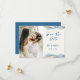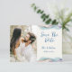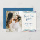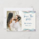 En fotospara-datum- bröllopsannons designad med ljusa abstrakta färgaccenter. Framsidans text innehåller: Spara datumet, brudens och brudgummens förnamn och bröllopsdatum på vit bakgrund. Baksidan innehåller texten: Detaljer följer och er bröllopswebbplats på en matchande blå bakgrund med abstrakt färgaccent. För att anpassa, infoga bara ert favoritfoto av paret i vår enkla mall och ersätt provbilden. Flytta fotot till vänster och se till att det täcker området. Infoga sedan era textdetaljer i vår mall och ersätt provet. Se till att titta på hela Modern Abstract Color Wave Brölloppskollektion för matchande kort och tillbehör. Bakgrundsfärgerna kan ändras med hjälp av vårt färgvalverktyg.