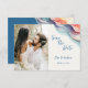 En fotospara datum bröllopsannons designad i ljusa abstrakta färgaccenter. Framsidans text innehåller: Spara datum, Brudens och brudgummens förnamn och bröllopsdatum på vit bakgrund. Baksidan innehåller texten: Detaljer följer och er bröllopswebbplats på en matchande blå bakgrund med abstrakt färgaccent. För att anpassa, infoga bara ert favoritfoto av paret i vår enkla mall och ersätt provbilden. Flytta fotot till vänster och se till att det täcker området. Infoga sedan era textdetaljer i vår mall och ersätt provtexten. Se till att titta på hela Modern Abstract Color Wave Brölloppskollektion för matchande kort och tillbehör. Bakgrundsfärgerna kan ändras med hjälp av vårt färgväljareverktyg.
